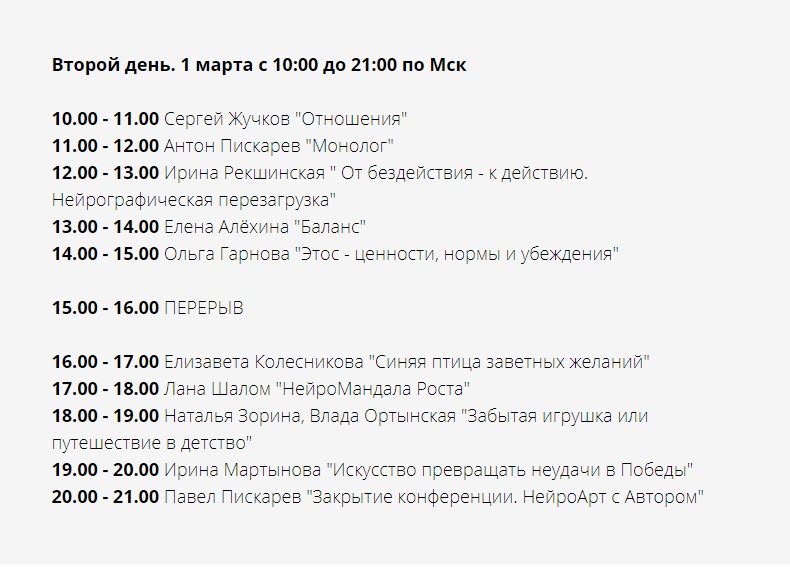 ссылкаПервый день 29 февраля 2 часть 16.00 - 21.00 -